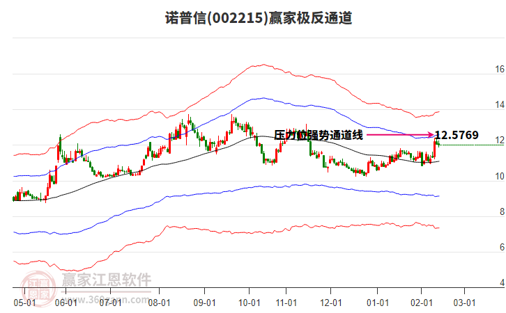 依據(jù)贏家江恩系統(tǒng)趨勢工具極反通道分析判斷諾普信002215運行在生命線以下弱勢區(qū)域,根據(jù)規(guī)則該股短線輕倉參與,股價跌至弱勢外軌線后波段再結(jié)合其它工具信號建倉。應(yīng)用口訣是:生命線上強(qiáng)勢走,生命線下難抬頭;紅黃兩條外軌線,壓力支撐顯勢頭。