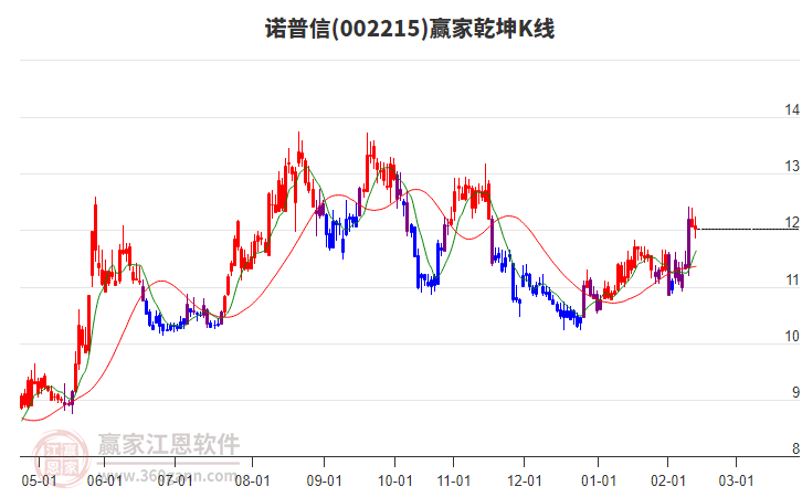 諾普信(002215)下跌途中收下影十字星,距下方10.85元差1.23元