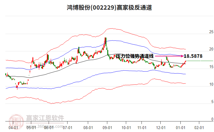 依據(jù)贏家江恩系統(tǒng)趨勢工具極反通道分析判斷鴻博股份002229運行在生命線以下弱勢區(qū)域,根據(jù)規(guī)則該股短線輕倉參與,股價跌至弱勢外軌線后波段再結(jié)合其它工具信號建倉。應(yīng)用口訣是:生命線上強勢走,生命線下難抬頭;紅黃兩條外軌線,壓力支撐顯勢頭。