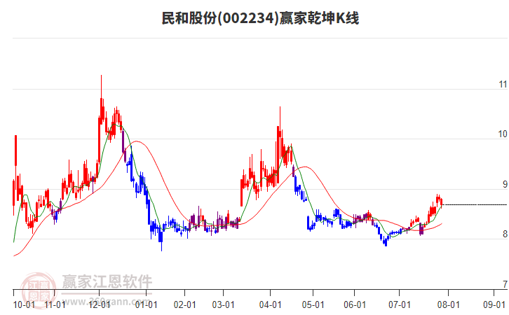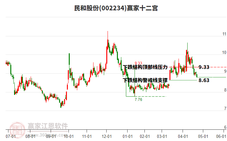 002234民和股份根據(jù)贏家江恩極反通道趨勢(shì)工具展示,上方壓力位9.9263,下方支撐位8.9792。002234民和股份處于贏家江恩空頭中期反彈形態(tài),1月5日發(fā)出江恩筑底信號(hào)后,經(jīng)過(guò)37日,今日形成