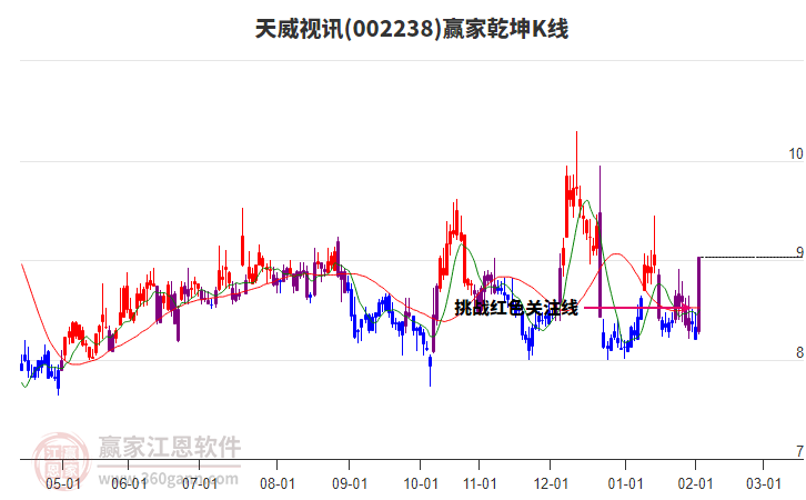002238天威視訊近期高點10.3持續(xù)下跌,漲幅回落26.69%,下穿贏家十二宮上漲結(jié)構(gòu)底部線