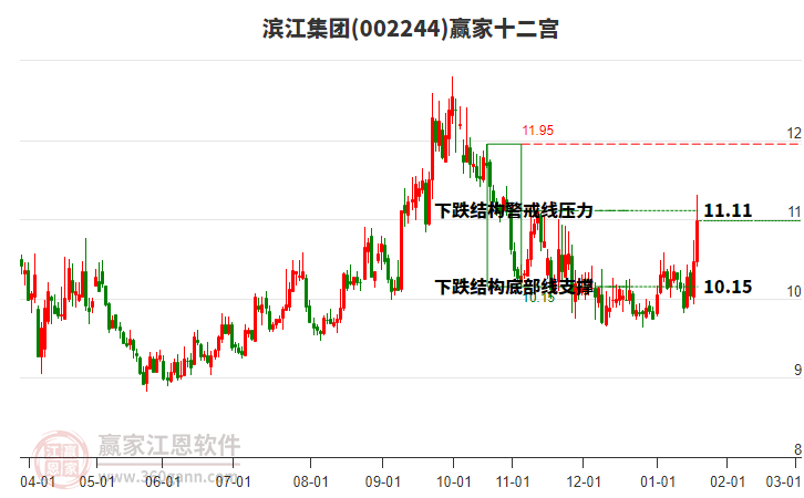 002244濱江集團(tuán)近期高點(diǎn)11.18持續(xù)下跌,漲幅回落11.58%,跌破波段百分比工具關(guān)鍵點(diǎn)位10.19元