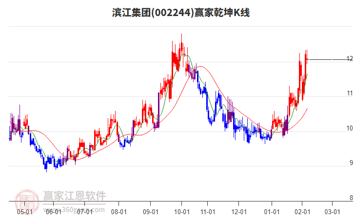 周一濱江集團(tuán)上穿藍(lán)色外軌線 以上下影小陽線收盤