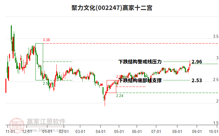 002247聚力文化處于贏家江恩多頭主線形態(tài),9月23日發(fā)出江恩筑頂信號后,經(jīng)過105日,今日再次發(fā)出江恩底分型并發(fā)出江恩筑底信號,中長期多頭趨勢依舊保持。002247聚力文化根據(jù)贏家江恩極反通道趨勢