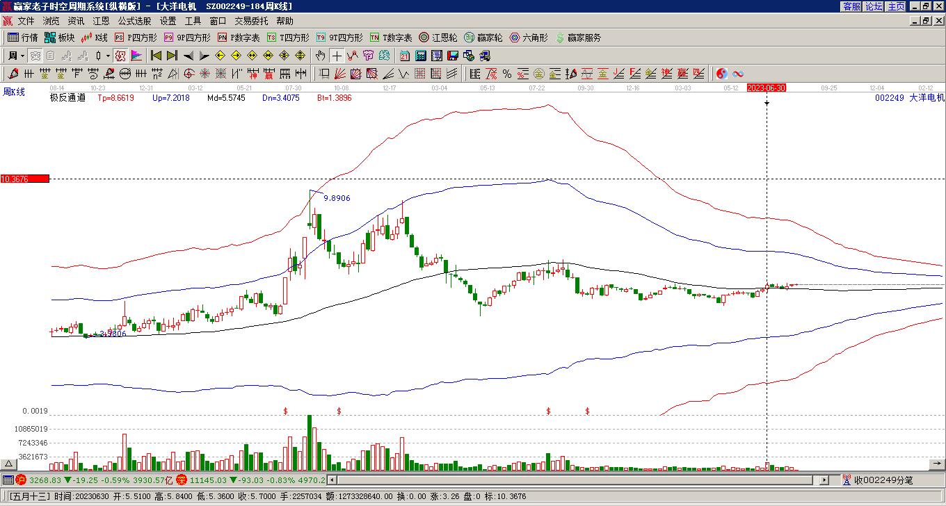 大洋電機(002249)處于贏家江恩多頭中期回調(diào)形態(tài),今日重心持續(xù)下移,短期延續(xù)下跌趨勢,6月30日發(fā)出中期江恩筑底信號后,經(jīng)過213日,今日形成中期筑頂信號,若持續(xù)下跌,觸發(fā)長期筑頂信號,大洋電機(