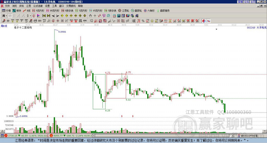 大洋電機(002249)處于贏家江恩多頭次主線形態(tài),12月8日發(fā)出江恩筑底信號后,經(jīng)過37日,今日形成短期筑頂信號,短期多頭趨勢已被破壞,中期多頭趨勢延續(xù),但長期處于回調(diào)中。大洋電機(002249)根