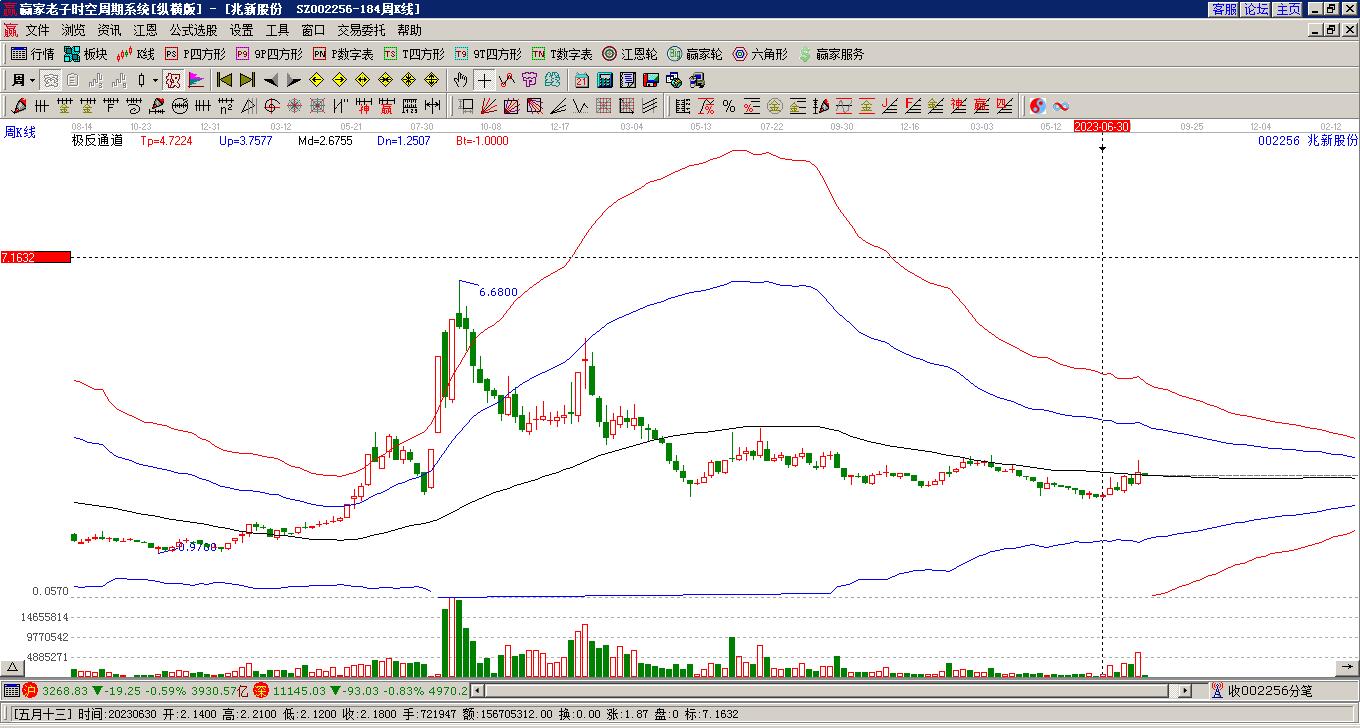 依據(jù)贏家江恩極反通道趨勢(shì)工具展示,本周股價(jià)處于生命線上強(qiáng)勢(shì)通道,本周收盤價(jià)3.53,自近期通道內(nèi)高點(diǎn)4.37持續(xù)下跌至本周,到達(dá)生命線2.8114點(diǎn)上方,短期關(guān)注此線支撐,如支撐不破,保持在強(qiáng)勢(shì)通道內(nèi),波段繼續(xù)看多,有望再次挑戰(zhàn)藍(lán)色上軌線。若跌破生命線2.8114,進(jìn)入弱勢(shì)通道,打開(kāi)下跌空間。