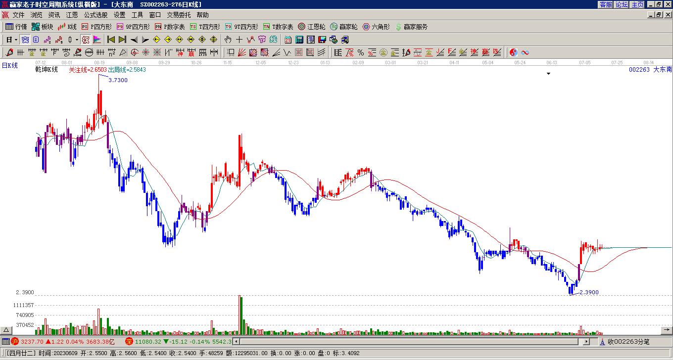 依據(jù)贏家江恩乾坤K線工具展示,目前股價處于藍(lán)色區(qū)域,本周K線以陰線收盤,周K線收于出局線下方。近期前方高點(diǎn)1月30日3.72點(diǎn),如短期有效突破前期高點(diǎn)3.72,有望走出震蕩區(qū)域,如不能突破,繼續(xù)延續(xù)箱體震蕩。