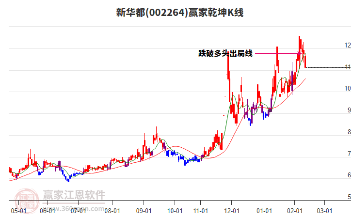 新華都(002264)近期高點(diǎn)12.09持續(xù)下跌,漲幅回落15.58%,黃金時(shí)間周期線顯示近期時(shí)間窗2月6日