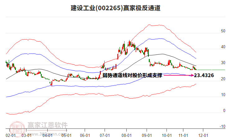 依據(jù)贏家江恩系統(tǒng)趨勢(shì)工具極反通道分析判斷建設(shè)工業(yè)002265運(yùn)行在生命線以上強(qiáng)勢(shì)區(qū)域,根據(jù)規(guī)則該股可短線、波段結(jié)合操作;結(jié)合物極必反的原理通過(guò)分鐘圖做盤中差價(jià),應(yīng)用口訣是:生命線上強(qiáng)勢(shì)走,生命線下難抬頭;紅黃兩條外軌線,壓力支撐顯勢(shì)頭。