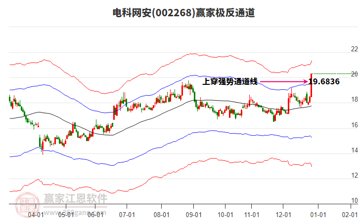 電科網(wǎng)安002268昨日收盤價為18.48元,今日收盤價為20.33元,漲停突破藍(lán)色上軌線