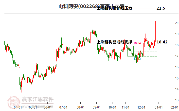 002268電科網(wǎng)安低開收漲停,受贏家十二宮上漲結(jié)構(gòu)頂部線壓制