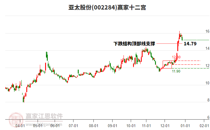 002284亞太股份處于贏家江恩多頭次主線形態(tài),從1月29日形成頂分型后持續(xù)下跌,重心下移,今日跌破前低形成短期初次筑頂信號(hào),短期多頭趨勢(shì)已被破壞,中長(zhǎng)期多頭趨勢(shì)依舊保持。002284亞太股份根據(jù)贏家