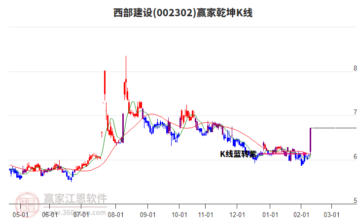 西部建設(shè)002302今日漲停,漲停突破藍(lán)色上軌線