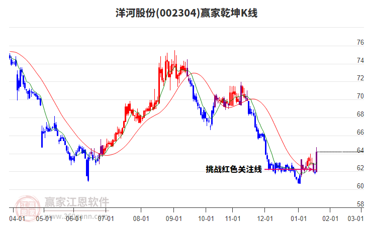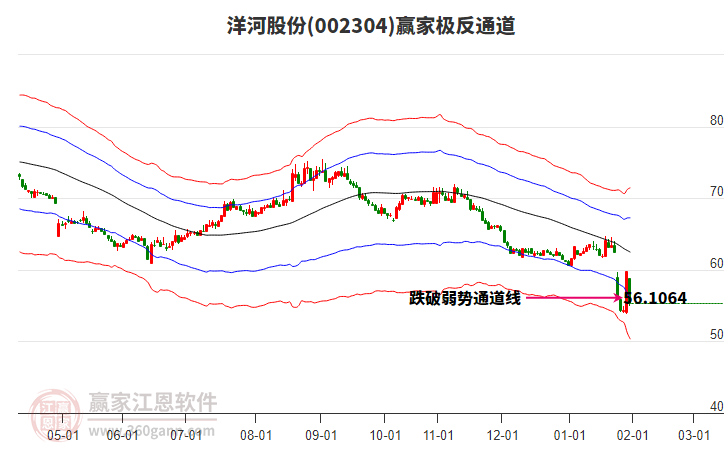 洋河股份目前漲停,與所屬行業(yè)概念下股票形成聯(lián)動(dòng)效應(yīng)。洋河股份截止目前突破極反通道弱勢(shì)通道線,根據(jù)贏家江恩極反通道趨勢(shì)工具展示,上方壓力位62.6954,下方支撐位56.6799。洋河股份今日低開,截止