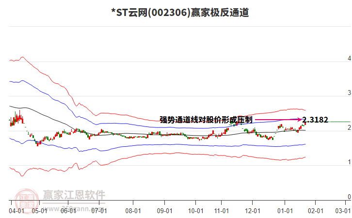 依據(jù)贏家江恩系統(tǒng)趨勢(shì)工具極反通道分析判斷中科云網(wǎng)002306運(yùn)行在生命線以下弱勢(shì)區(qū)域,根據(jù)規(guī)則該股短線輕倉參與,股價(jià)跌至弱勢(shì)外軌線后波段再結(jié)合其它工具信號(hào)建倉。應(yīng)用口訣是:生命線上強(qiáng)勢(shì)走,生命線下難抬頭;紅黃兩條外軌線,壓力支撐顯勢(shì)頭。