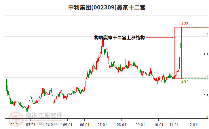 中利集團(tuán)(002309)今日漲停,上穿江恩價(jià)格百分比工具關(guān)鍵點(diǎn)位3.36元