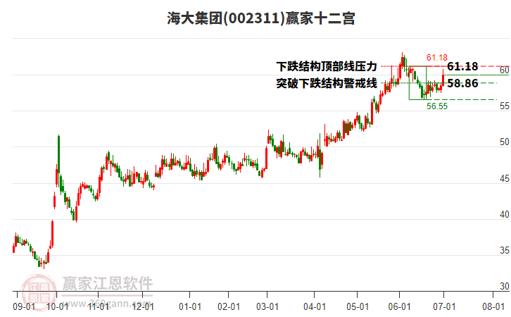 海大集團(tuán)(002311)根據(jù)贏家江恩極反通道趨勢(shì)工具展示,上方壓力位61.1665,下方支撐位50.7374。海大集團(tuán)(002311)處于贏家江恩多頭主線形態(tài),10月13日發(fā)出江恩筑頂信號(hào)后,經(jīng)過24
