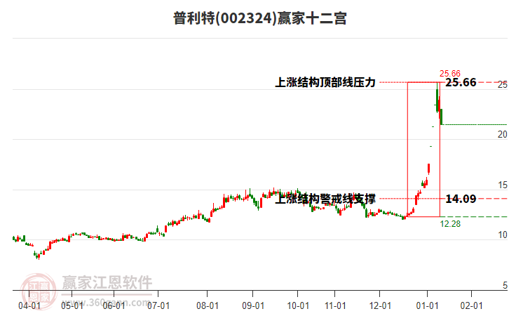 002324普利特漲至老子十二宮上漲結(jié)構(gòu)頂部上方區(qū)域內(nèi) 近14個(gè)交易日漲幅89.79%