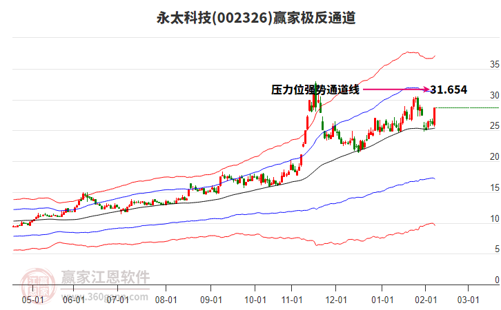 002326永太科技處于贏家江恩多頭主線形態(tài),從1月14日形成底分型后持續(xù)上攻,今日突破前高形成初次江恩筑底信號,中長期多頭趨勢依舊保持。002326永太科技根據(jù)贏家江恩極反通道趨勢工具展示,上方壓力