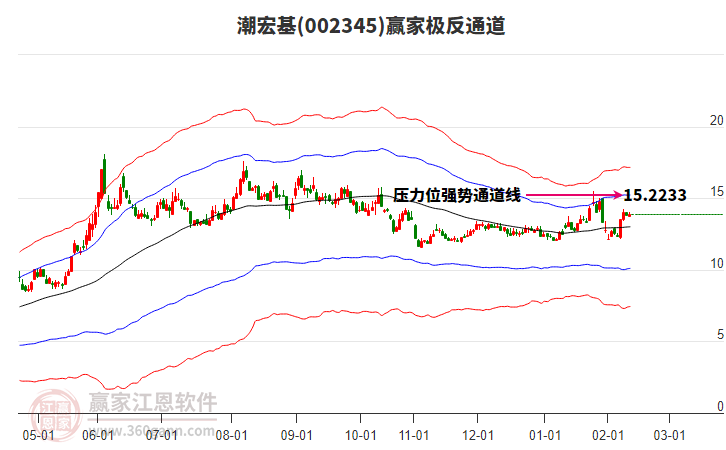 今日002345潮宏基最高價(jià)15.0挑戰(zhàn)了贏家極反通道工具藍(lán)色外軌線,受到藍(lán)色外軌線強(qiáng)力壓制,最終收盤停留在在藍(lán)色外軌線與生命線上方的強(qiáng)勢通道區(qū)域。002345潮宏基近10個(gè)交易日漲幅10.85%。
