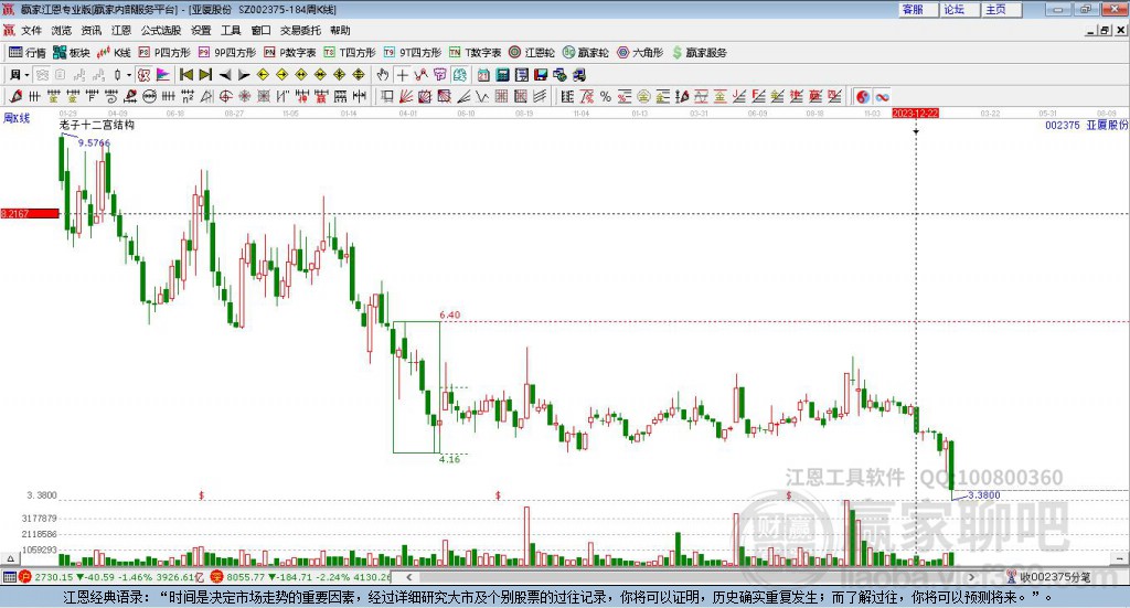 依據(jù)贏家十二宮結(jié)構(gòu)模型工具展示,本周股價(jià)位于前期2024年2月8日形成的下跌結(jié)構(gòu)頂部線4.92與警戒線4.11之間,本周微跌4.7%,以4.26元陰線收盤。依據(jù)贏家十二宮多空能量守恒規(guī)則,下跌結(jié)構(gòu)警戒線是多空能量平衡爭奪點(diǎn),突破或跌破往往意味著平衡打破。本周股價(jià)若能站穩(wěn)警戒線位置,多方能量有望主導(dǎo)上攻,向上頂部線位置尋找多空能量平衡位。如股價(jià)不能有效站穩(wěn)警戒線,則空方能量主導(dǎo)下探,向底部線附近尋找新的多空能量平衡位。