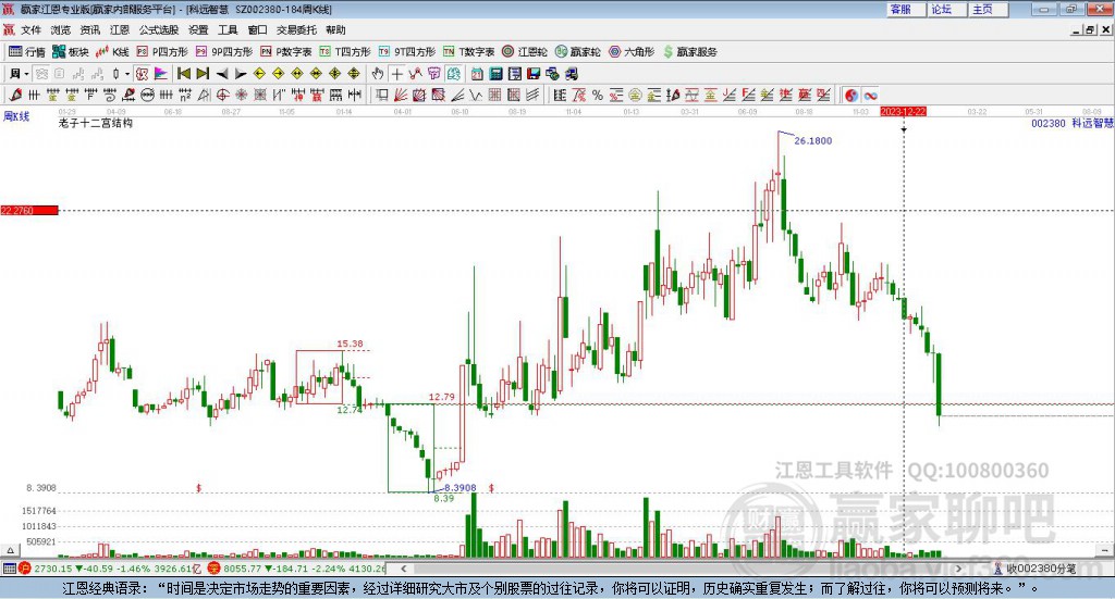 科遠智慧(002380)低開收上影陰十字星,江恩周天時間循環(huán)線顯示近期時間窗2月27日