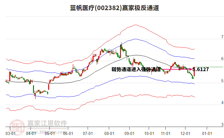 藍(lán)帆醫(yī)療處于贏家江恩多頭主線形態(tài),今日重心上移,短期持續(xù)上漲,從12月11日形成中期底分型后,行情經(jīng)歷一波上漲,突破前高形成中期初次筑底信號(hào),長期處于多頭上漲趨勢(shì)。藍(lán)帆醫(yī)療根據(jù)贏家江恩極反通道趨勢(shì)工具