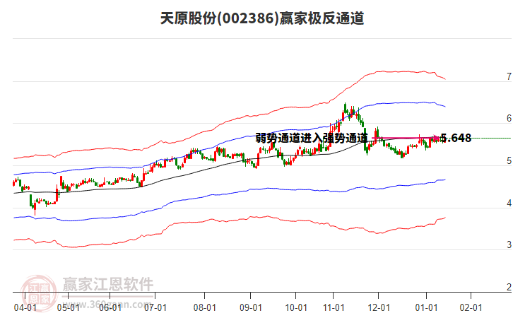 天原股份(002386)根據(jù)贏家江恩極反通道趨勢(shì)工具展示,上方壓力位6.3381,下方支撐位5.673。天原股份(002386)處于贏家江恩多頭次主線形態(tài),1月15日發(fā)出江恩筑底信號(hào)后,經(jīng)過(guò)29日,今