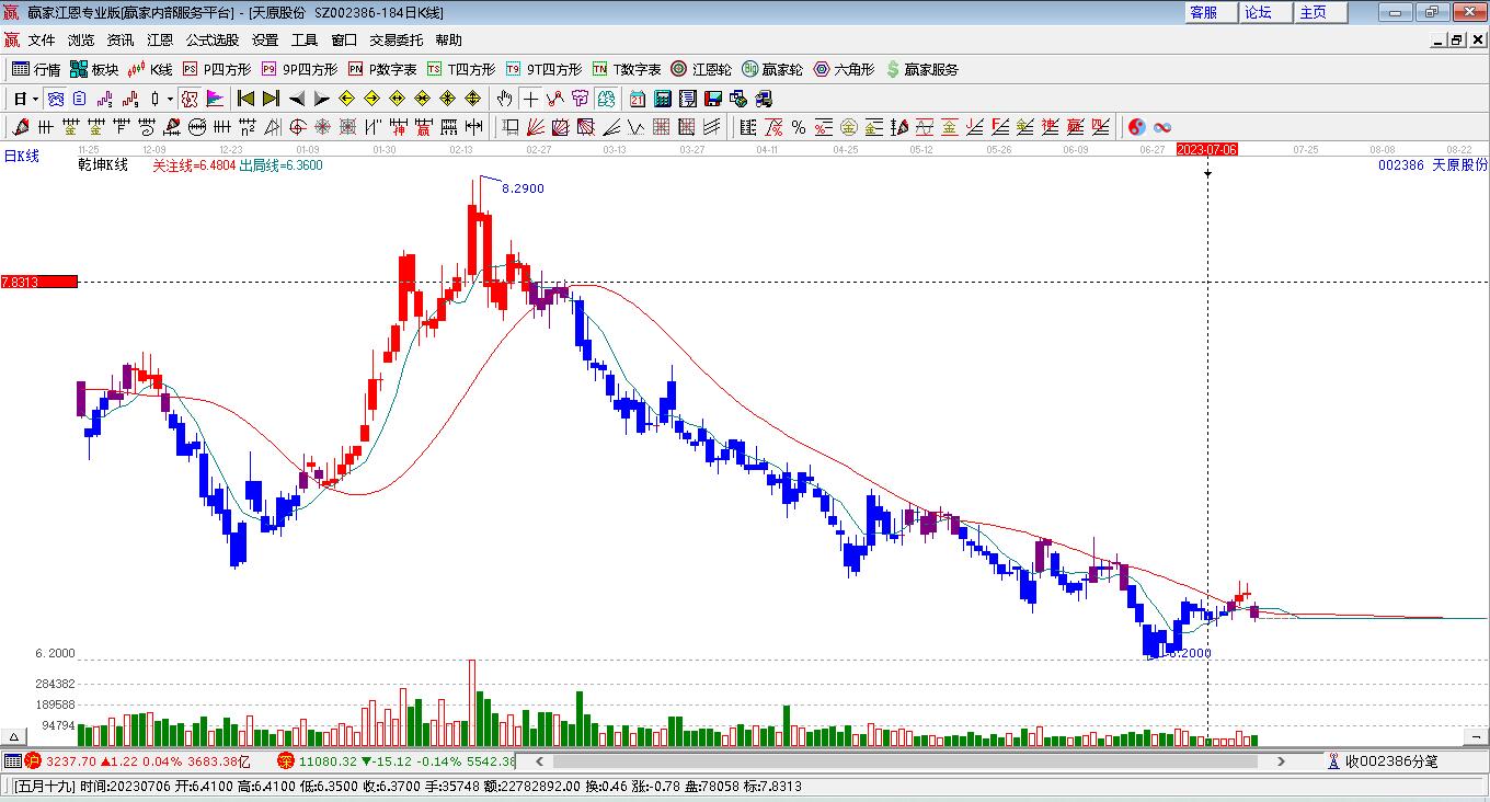天原股份(002386)根據(jù)贏家江恩極反通道趨勢工具展示,上方壓力位6.3381,下方支撐位5.673。天原股份(002386)處于贏家江恩多頭次主線形態(tài),1月15日發(fā)出江恩筑底信號后,經(jīng)過29日,今