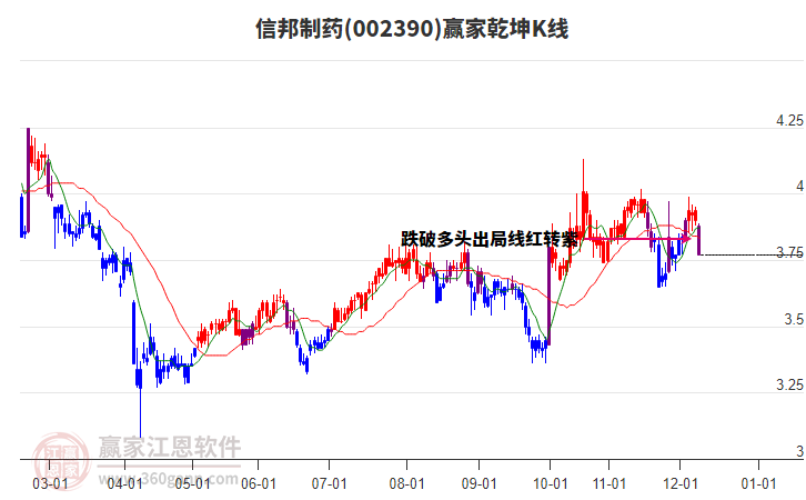信邦制藥(002390)根據(jù)贏家江恩極反通道趨勢工具展示,上方壓力位3.5865,下方支撐位3.0457。信邦制藥(002390)處于贏家江恩空頭主線形態(tài),1月6日發(fā)出江恩筑底信號后,經(jīng)過10日,今日