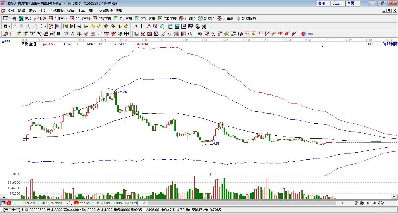 信邦制藥根據(jù)贏家江恩極反通道趨勢工具展示,上方壓力位3.6812,下方支撐位3.121。信邦制藥處于贏家江恩空頭主線形態(tài),今日雖重心上移,但短期空頭趨勢未改變,長期發(fā)出江恩筑頂信號,注意風險規(guī)避。信邦