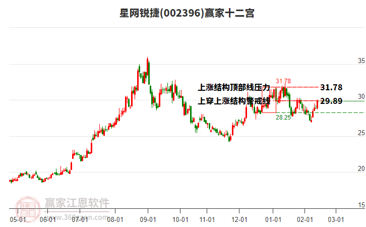 002396星網銳捷根據贏家江恩極反通道趨勢工具展示,上方壓力位32.6469,下方支撐位28.2492。002396星網銳捷處于贏家江恩多頭中期回調形態(tài),今日重心下移,形成短期筑頂信號,7月11日發(fā)