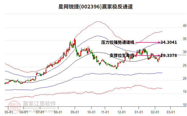 依據贏家江恩系統(tǒng)趨勢工具極反通道分析判斷星網銳捷002396運行在生命線以上強勢區(qū)域,根據規(guī)則該股可短線、波段結合操作;結合物極必反的原理通過分鐘圖做盤中差價,應用口訣是:生命線上強勢走,生命線下難抬頭;紅黃兩條外軌線,壓力支撐顯勢頭。