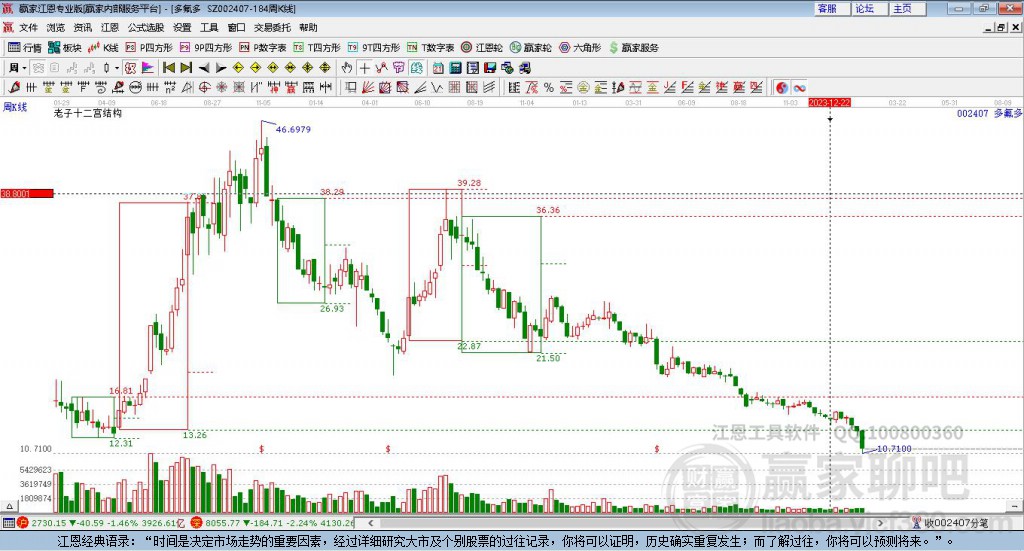 002407多氟多在高點37.53后,回調了4.63元,受贏家十二宮上漲結構警戒線支撐