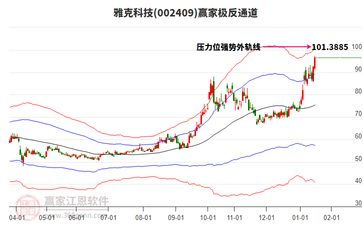 雅克科技002409低開收中陽線,處于超強通道延續(xù)上漲趨勢