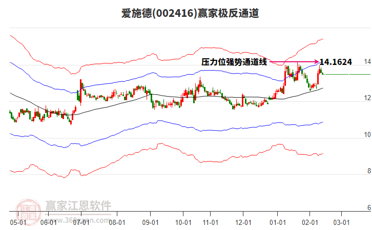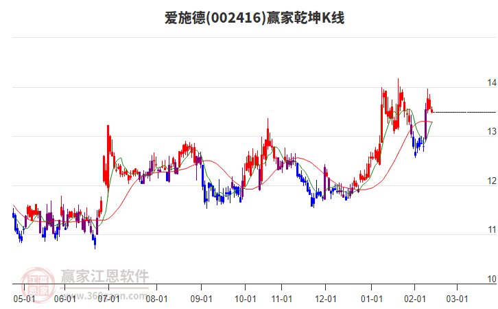 本周002416愛施德報收于13.64元,較上周的12.58上漲8.43%,綜合兩個工具的分析結(jié)果,目前處于近期高位,未來下跌風(fēng)險隨著時間推移有增大可能性。