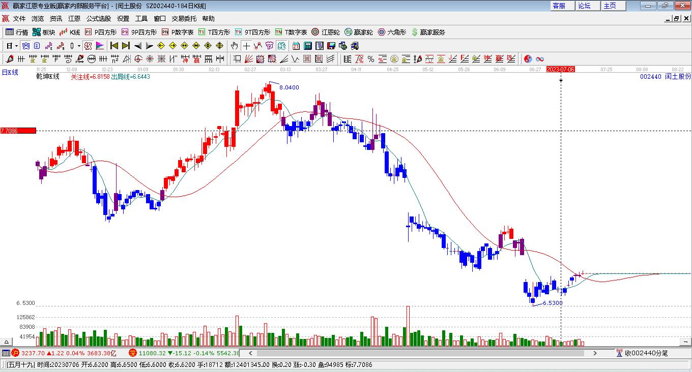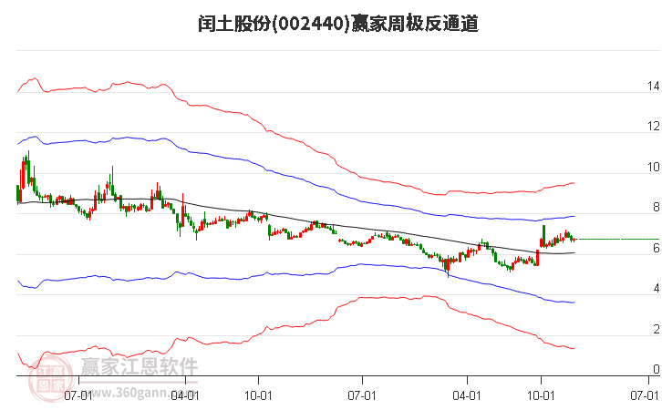 閏土股份002440低開收陽線,黃金時(shí)間周期線顯示今天是時(shí)間窗