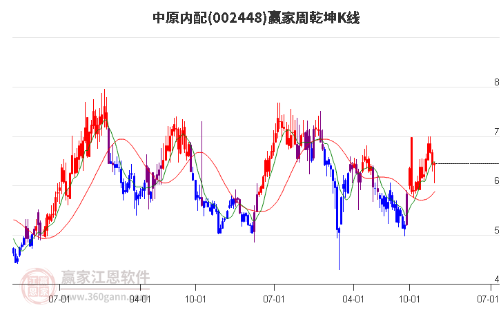 中原內(nèi)配低開收穿頭破腳大陽線,進入乾坤K線紫色多空爭奪期