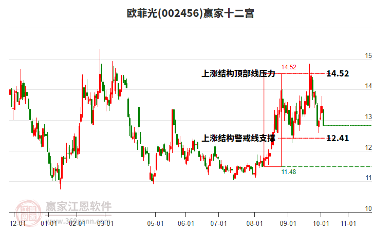 歐菲光(002456)處于贏家江恩多頭主線形態(tài),10月13日發(fā)出江恩筑頂信號(hào)后,經(jīng)過(guò)32日,今日再次發(fā)出江恩底分型并發(fā)出江恩筑底信號(hào),中期多頭趨勢(shì)延續(xù),但長(zhǎng)期處于回調(diào)中。歐菲光(002456)根據(jù)贏家