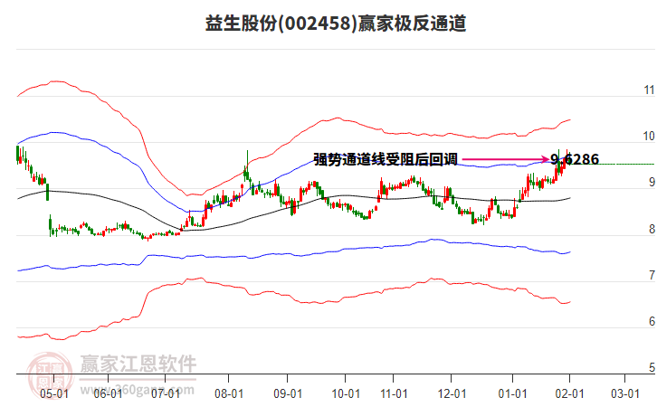 周五益生股份最高價9.95挑戰(zhàn)了贏家極反通道工具藍色外軌線,受到藍色外軌線強力壓制,最終收盤停留在在藍色外軌線與生命線上方的強勢通道區(qū)域。益生股份近10個交易日漲幅5.32%。