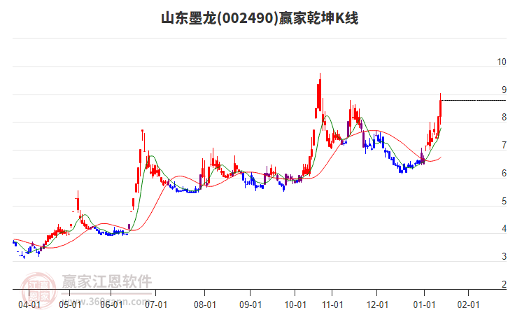 依據(jù)贏家江恩系統(tǒng)趨勢工具極反通道分析判斷ST墨龍002490運行在生命線以上強勢區(qū)域,根據(jù)規(guī)則該股可短線、波段結(jié)合操作;結(jié)合物極必反的原理通過分鐘圖做盤中差價,應(yīng)用口訣是:生命線上強勢走,生命線下難抬頭;紅黃兩條外軌線,壓力支撐顯勢頭。