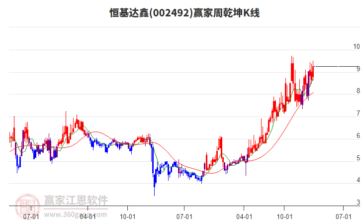 恒基達(dá)鑫今日漲停,進(jìn)入乾坤K線紅色上漲趨勢(shì)