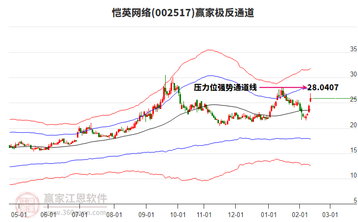 愷英網(wǎng)絡(luò)(002517)根據(jù)贏家江恩極反通道趨勢(shì)工具展示,上方壓力位28.0407,下方支撐位23.607。愷英網(wǎng)絡(luò)(002517)處于贏家江恩多頭中期回調(diào)形態(tài),從2月6日形成底分型后持續(xù)上攻,今日突