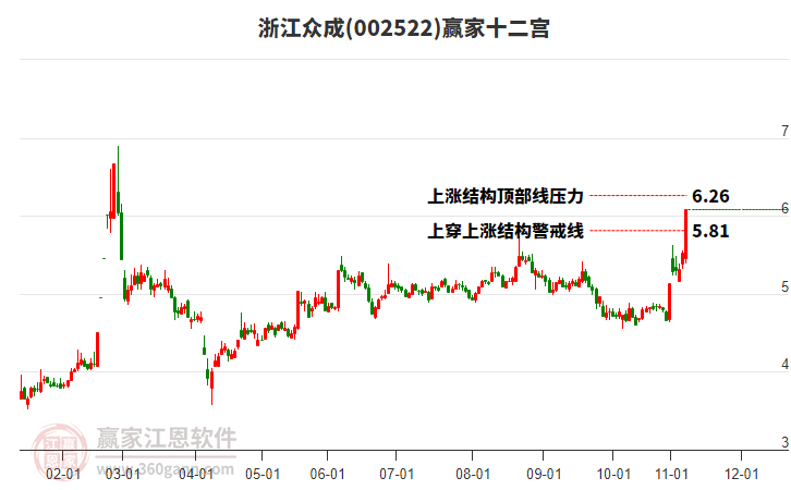 該股自近期低點(diǎn)5.76,漲至今日5.92,共上漲0.16元,漲幅2.78%,當(dāng)前股價(jià)處于2022年7月28日形成的上漲結(jié)構(gòu)頂部線與警戒線之間。依據(jù)贏家十二宮多空能量守恒規(guī)則,若多方能量再度聚集發(fā)力上攻,有望繼續(xù)上攻關(guān)注結(jié)構(gòu)頂部線6.26尋找平衡位。