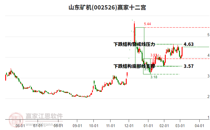 該股自近期低點(diǎn)3.71,漲至今日3.81,共上漲0.1元,漲幅2.7%,當(dāng)前股價(jià)處于2026年1月15日形成的上漲結(jié)構(gòu)頂部線與警戒線之間。依據(jù)贏家十二宮多空能量守恒規(guī)則,若多方能量再度聚集發(fā)力上攻,有望繼續(xù)上攻關(guān)注結(jié)構(gòu)頂部線4.02尋找平衡位。