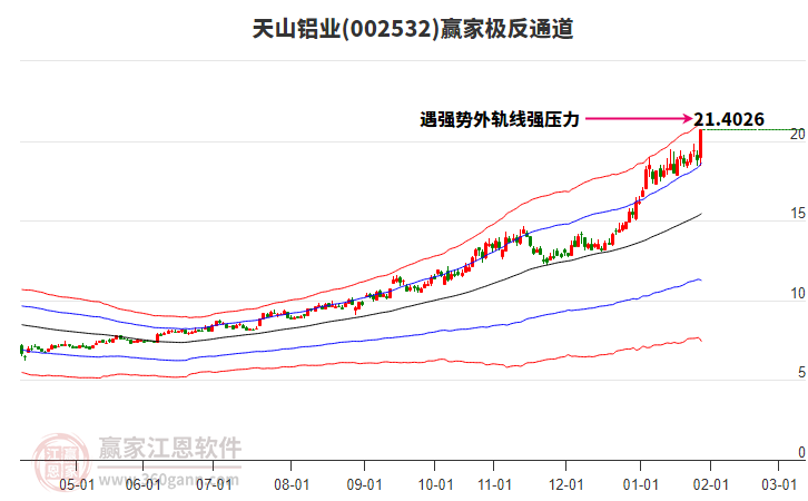 天山鋁業(yè)今日漲停,受極反通道強(qiáng)勢(shì)外軌線壓制