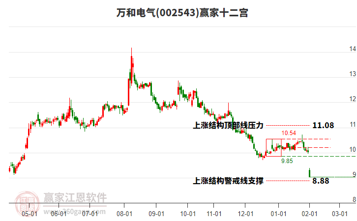 002543萬(wàn)和電氣從高點(diǎn)11.67,持續(xù)回調(diào)了15天,跌破黃金價(jià)格回調(diào)支撐位工具支撐位10.48元