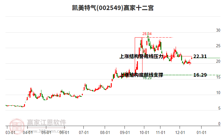 凱美特氣(002549)處于贏家江恩多頭主線形態(tài),從12月16日形成底分型后持續(xù)上攻,今日突破前高形成初次江恩筑底信號,中長期目前都處于回調(diào)中。凱美特氣(002549)目前大幅上漲8.11%,所屬板塊