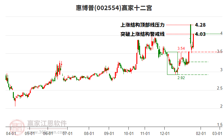 002554惠博普根據(jù)贏家江恩極反通道趨勢工具展示,上方壓力位4.3252,下方支撐位3.5669。002554惠博普處于贏家江恩多頭次主線形態(tài),11月21日發(fā)出江恩筑底信號后,經(jīng)過81日,今日形成短